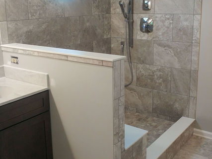Bathroom walls, floors, lighting, whirlpools, custom showers, vanity cabinets & tops